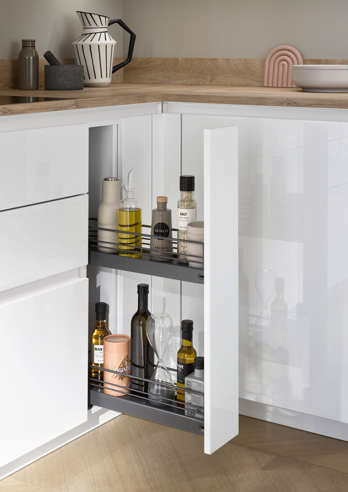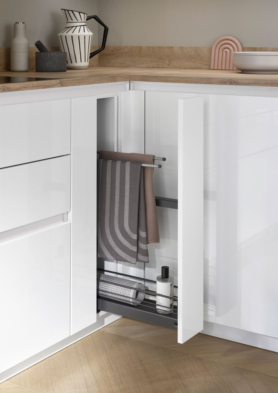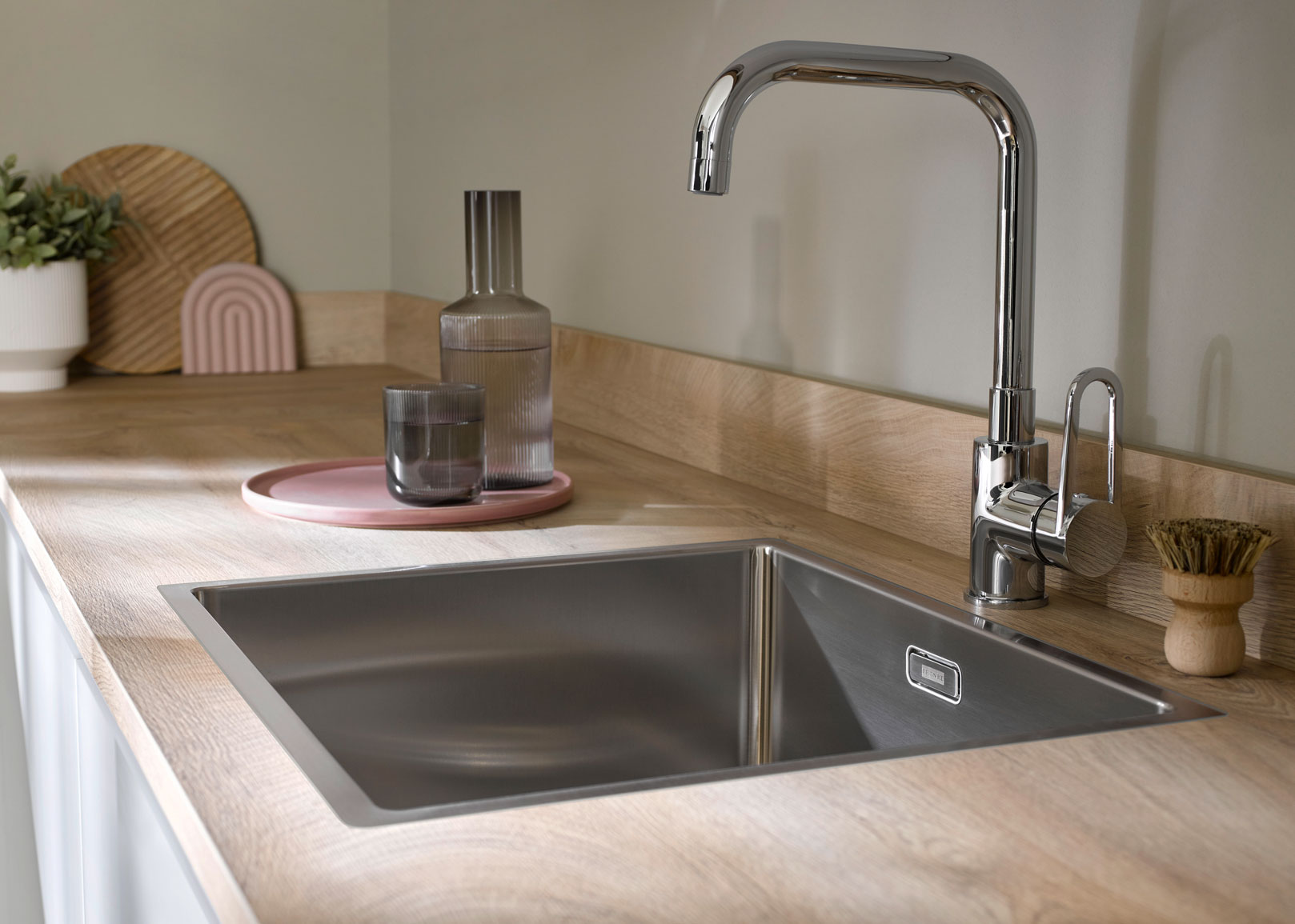 ✓ Komplette Raumnutzung des Spülenunterschranks dank maßlich abgestimmter Lösungen, im Einklang mit Spüle und Armatur